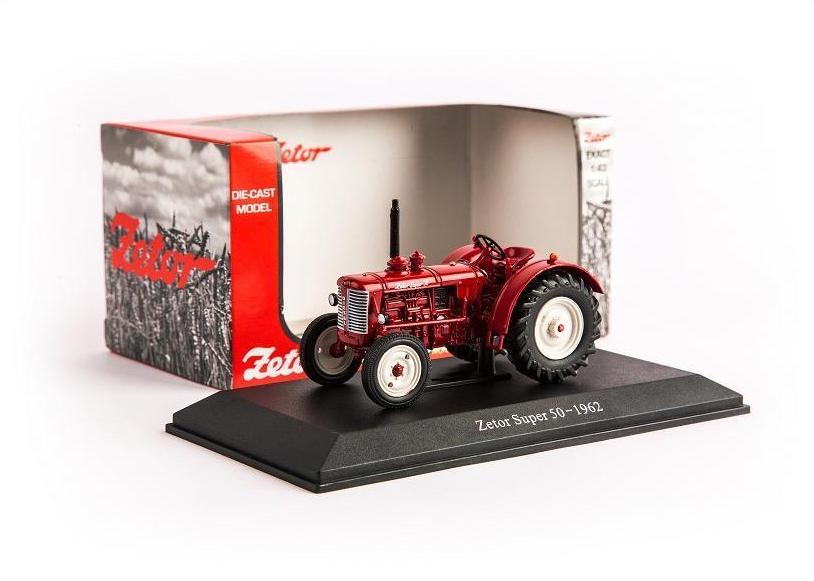 Model metalowy ciągnika Zetor Super 50 w skali 1:43 na postumencie.