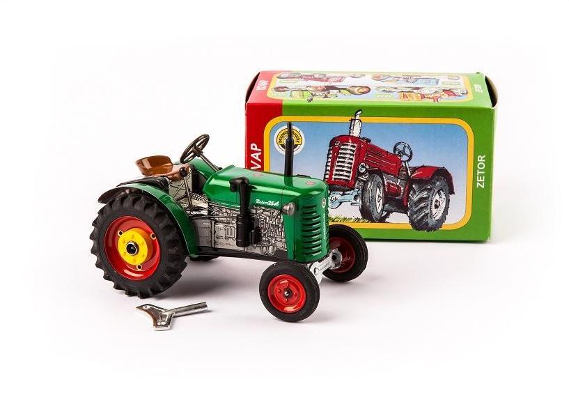 Model ciągnika Zetor 25A. Model jest metalowy, nakręcany, posiada skrzynię biegów z możliwością zmiany biegów podczas jazdy, 3 biegi do przodu 1 bieg do tyłu , hamulec ręczny unieruchamiający pojazd, obrotową kierownicę do zmiany kierunku jazdy. Model podczas jazdy wydaje dźwięk przypominający pracę starego silnika.